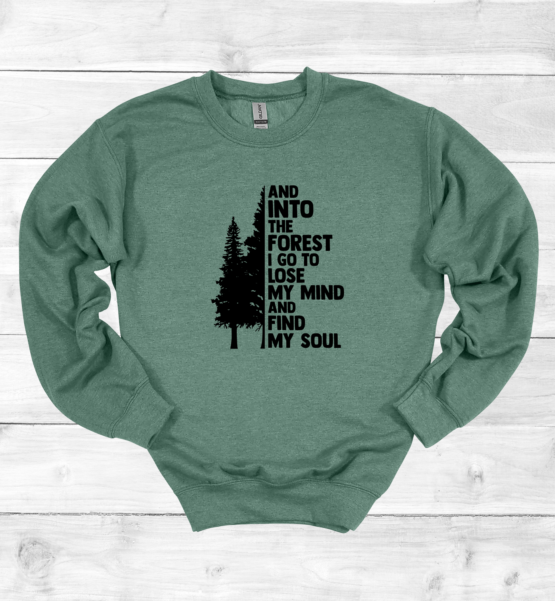 Experience the peace and serenity of nature with our And Into the Forest I Go Crew Neck Sweatshirt. Made with soft, comfortable fabric, this shirt features the inspiring slogan "Into the forest I go to lose my mind and find my soul." Perfect for those who seek adventure and a deeper connection with the world around them.