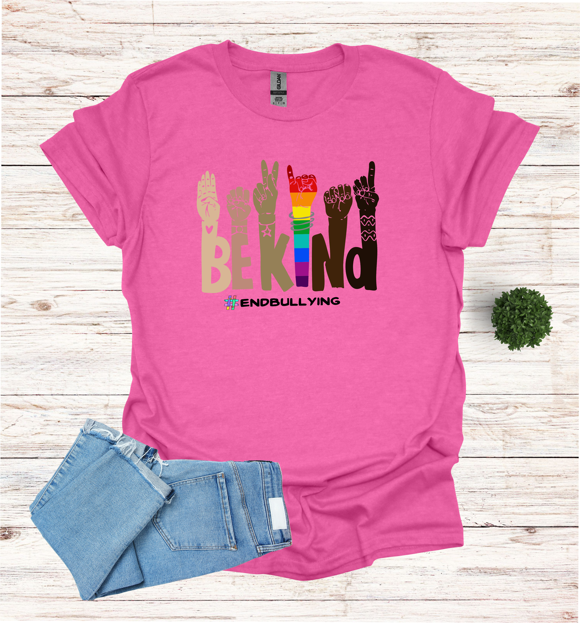 Show your support for anti-bullying with our Be Kind T-Shirt. Featuring the iconic hand signal and powerful message, this soft style shirt is perfect for spreading awareness. Join the movement and help put an end to bullying with our comfortable and stylish tee.