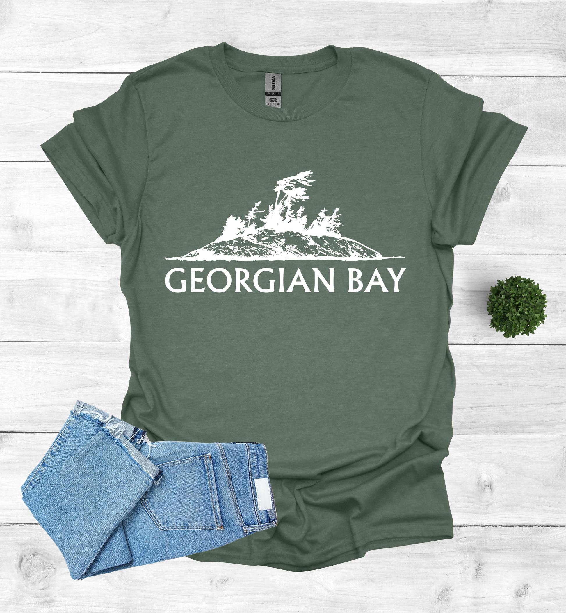 Designs are printed and applied to the shirt by us right here in Georgian Bay.