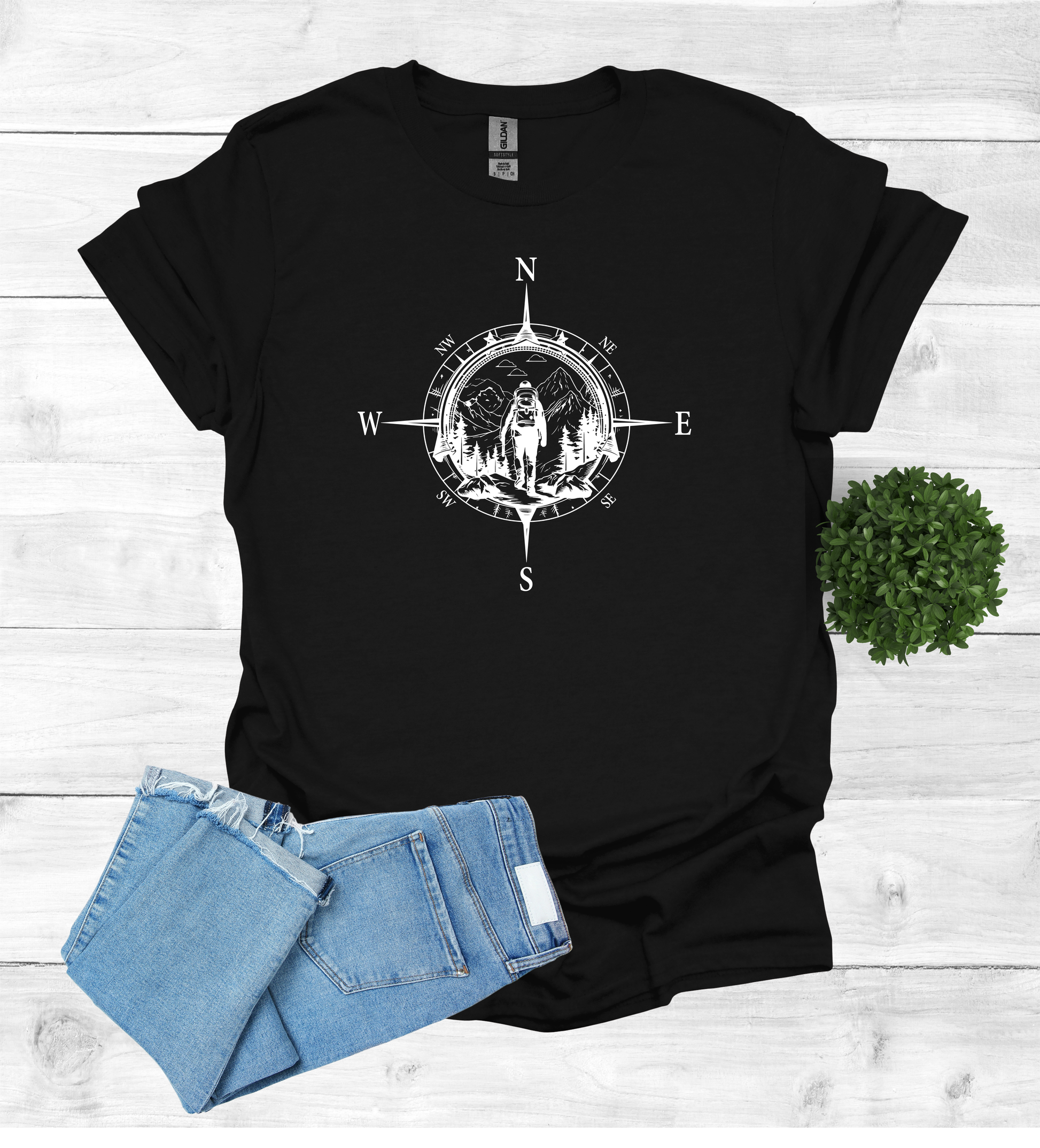 Hiker walking in wilderness with a compass scene